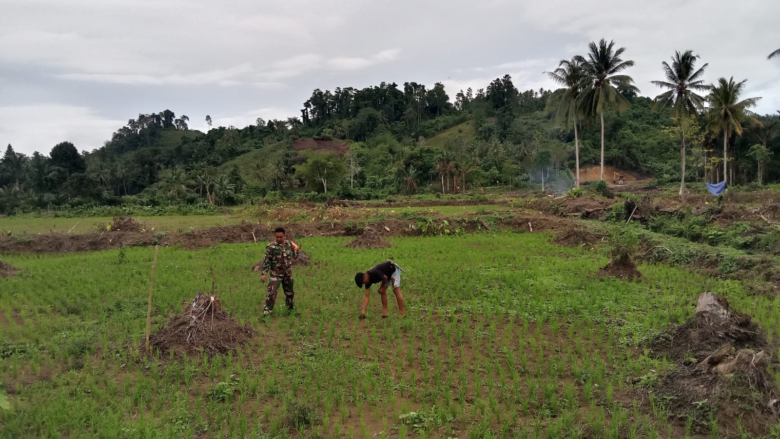 Buol – Dalam rangka mendukung ketahanan pangan di wilayah binaan, anggota Koramil 1305-07/Bunobogu, Kopda Alif Amin melaksanakan kegiatan Hanpangan berupa pemeliharaan tanaman padi milik Bapak Sarjudin. Kegiatan bertempat di Desa Bunobogu, Kecamatan Bunobogu, Kabupaten Buol. Minggu, 25/1/26.