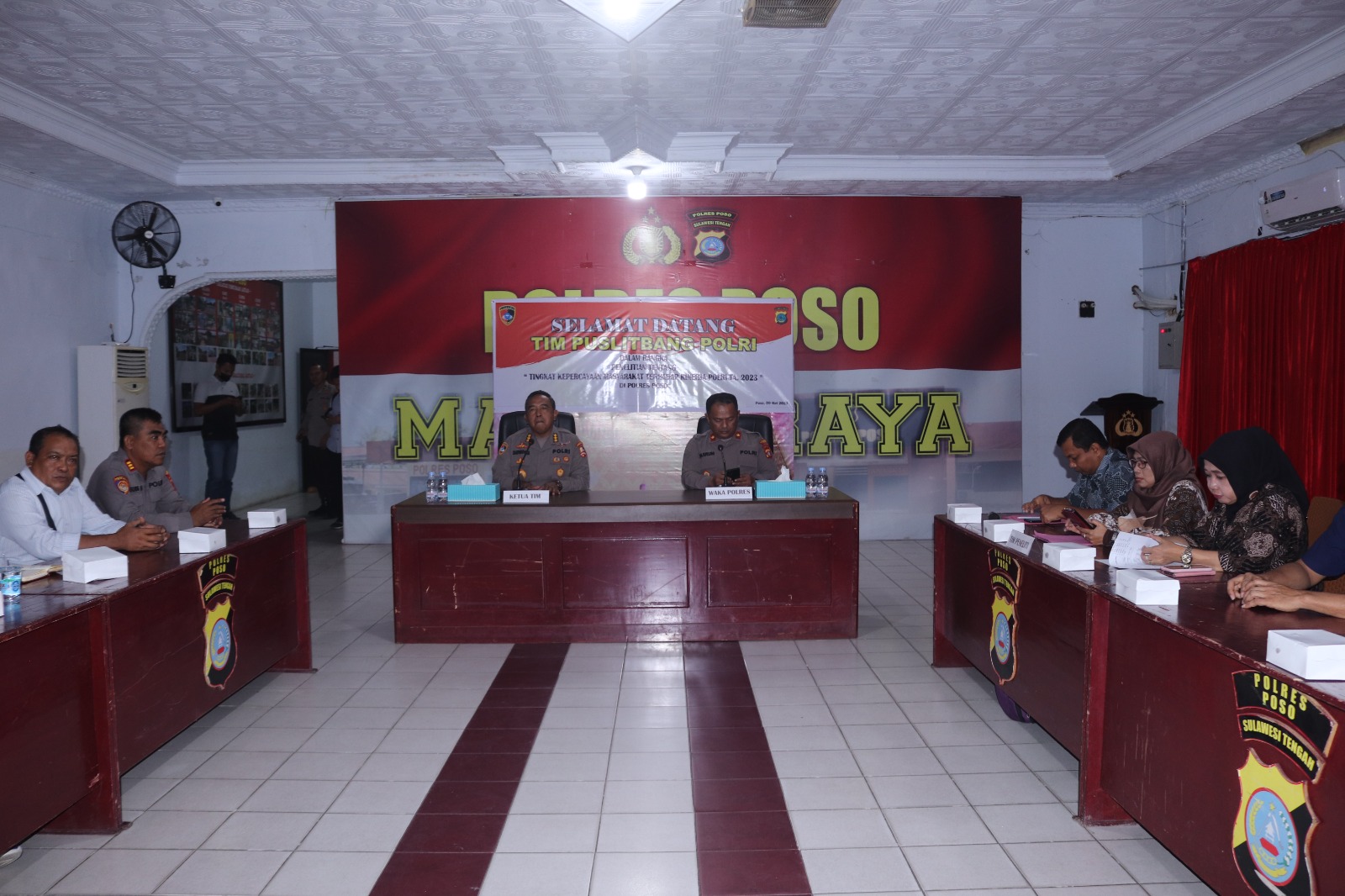 Poso, Sulteng | Kabartoday.id – Tim Pusat Penelitian dan Pengembangan (Puslitbang) Polri kini menyambangi Polres Poso dalam rangka melaksanakan penelitian tingkat kepercayaan publik atas kinerja Polri diwilayah kabupaten Poso. Selasa (9/05/2023).