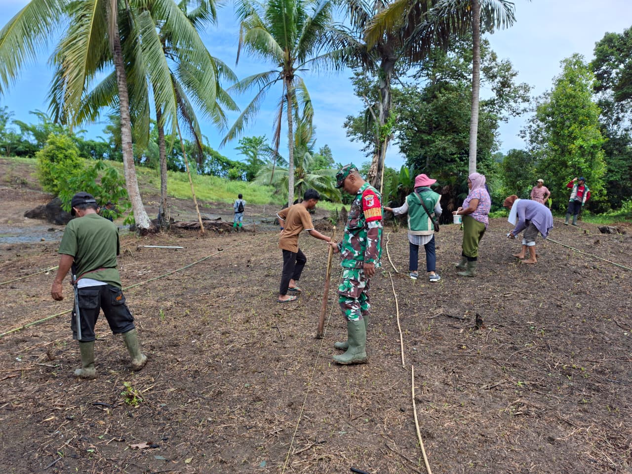 Buol – Dalam rangka mendukung ketahanan pangan wilayah, anggota Koramil 1305-07/Bunobogu Sertu Taufik melaksanakan kegiatan hanpangan penanaman jagung Kegiatan tersebut berlangsung di lahan pertanian milik Bapak Rano yang berlokasi di Desa Taat, Kecamatan Gadung, Kabupaten Buol. Senin, 26/1/26.