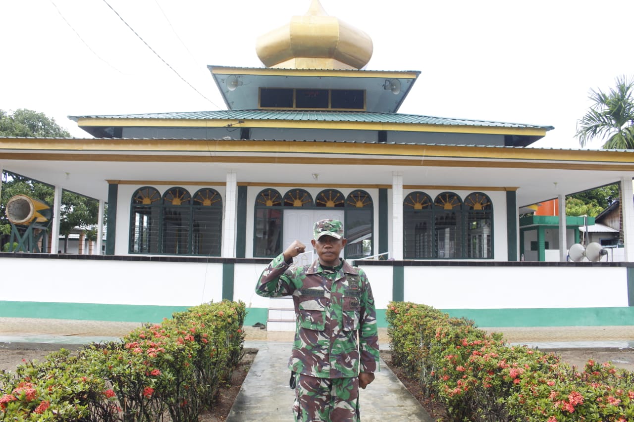 Tuntasnya Bangunan Mesjid 100 persen, Satu Anggota Satgas TMMD Berfoto