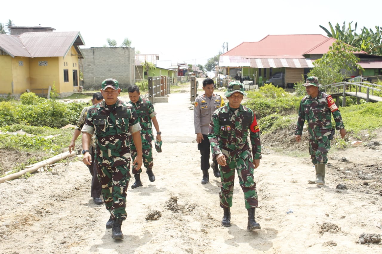 Aster Kasdam XIII/Mdk bersama Kapendam XIII/Mdk melihat secara langsung kegiatan fisik Pengerasan Jalan (Infrastruktur) sepanjang 3.000 meter dan lebar 4 antara Dusun Kuala menuju Dusun Penyapu.