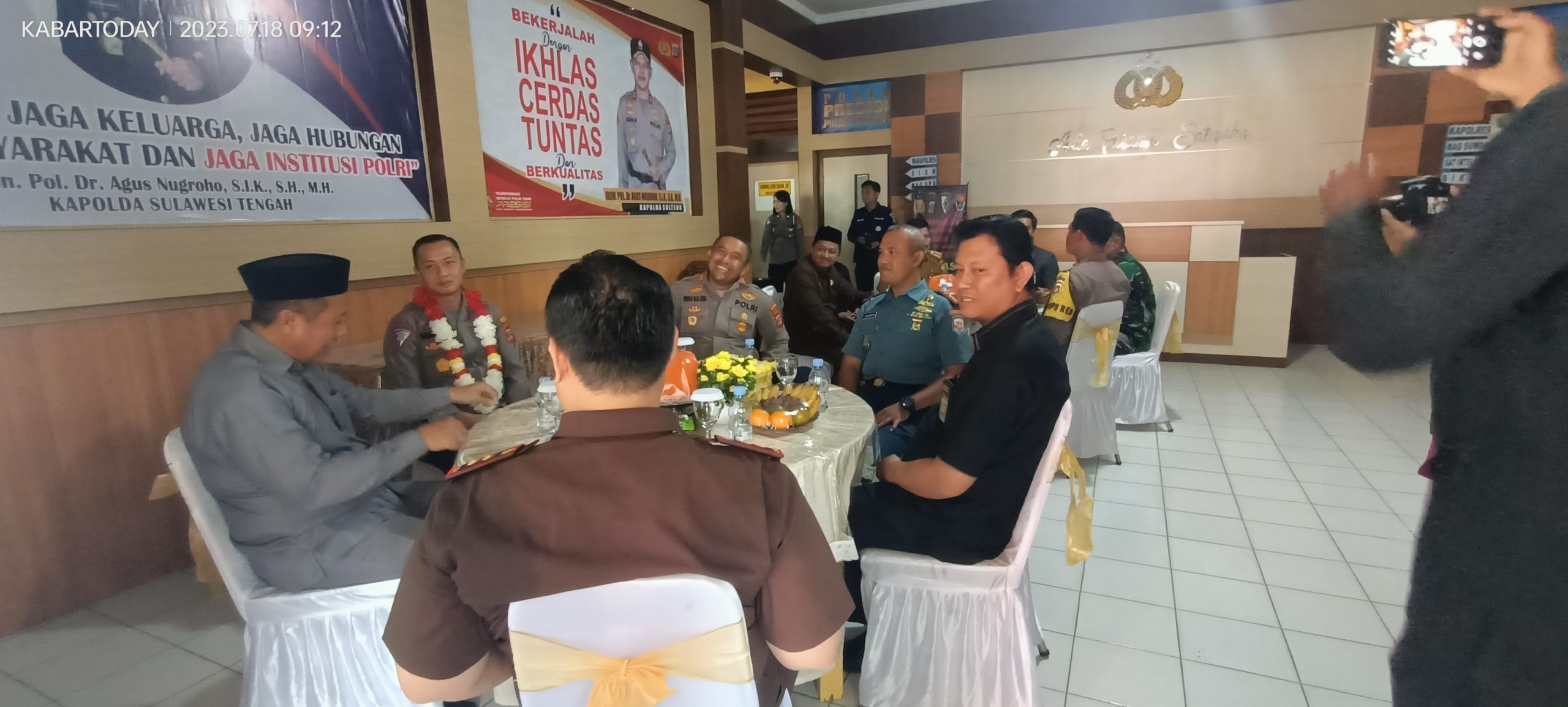 Setelah disambut dengan pasukan pedang pora, pejabat lama AKBP Ridwan Raja Dewa SIK, terlihat menyambut Kapolres baru, untuk bertatap muka bersama wakil Ketua DPRD Tolitoli Jemmy Yusuf, Danlanal Tolitoli, Dandim 1305/BT, yang di wakili Pasi OPS Kodim 1305/BT Kapten Inf Yan G. Loliwu, Kajari Tolitoli Albertinus Parlinggoman Napitupulu, SH. MH, Kepala Kemenag Tolitoli yang di wakili, Kepala dinas Pendidikan Kabupaten Tolitoli Usman Taba, ketua Pengadilan Negeri Tolitoli.