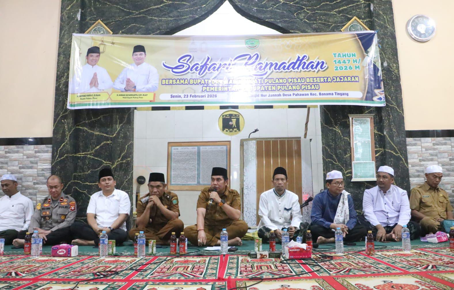 SUYANTO | PULANG PISAU | KALTENG – Wakil Bupati Pulang Pisau, Ahmad Jayadikarta, menghadiri kegiatan Safari Ramadan 1447 Hijriah/2026 Masehi yang digelar di Masjid Nur Jannah, Desa Pahawan, Kecamatan Banama Tingang, Senin (23/02/2026).