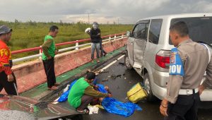 “Akibat benturan tersebut penumpang sepeda motor, yakni TS (56) terlempar keluar dari jembatan dan mengakibatkan korban meninggal dunia (MD), sedangkan pengendara sepeda motor OKR (60) mengalami luka luka. Keduanya diketahui merupakan warga Desa Pilang Kecamatan Jabiren Raya, Kabupaten Pulang Pisau,” beber Kompol Edia.