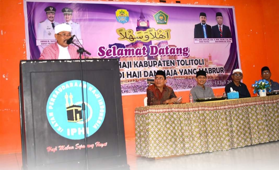 Sementara itu, mewakili sambutan Kepala Kantor Kementerian Agama Kabupaten Tolitoli yang di sampaikan oleh Hi. Jumade, S. Ag, M. Pdi, selaku Kasi Bimas Kementerian Agama Tolitoli, mengucapakn selamat datang kembali di Tanah Air kepada Tamu Allah.