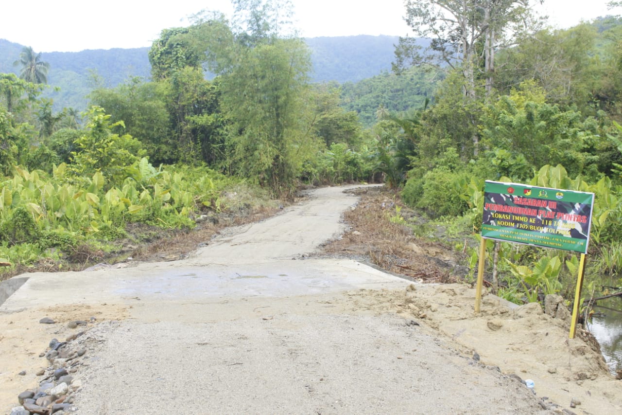 “Kini jalannya sudah halus berkat program fisik TMMD Ke-118 Kodim 1305/BT,” tambahnya.