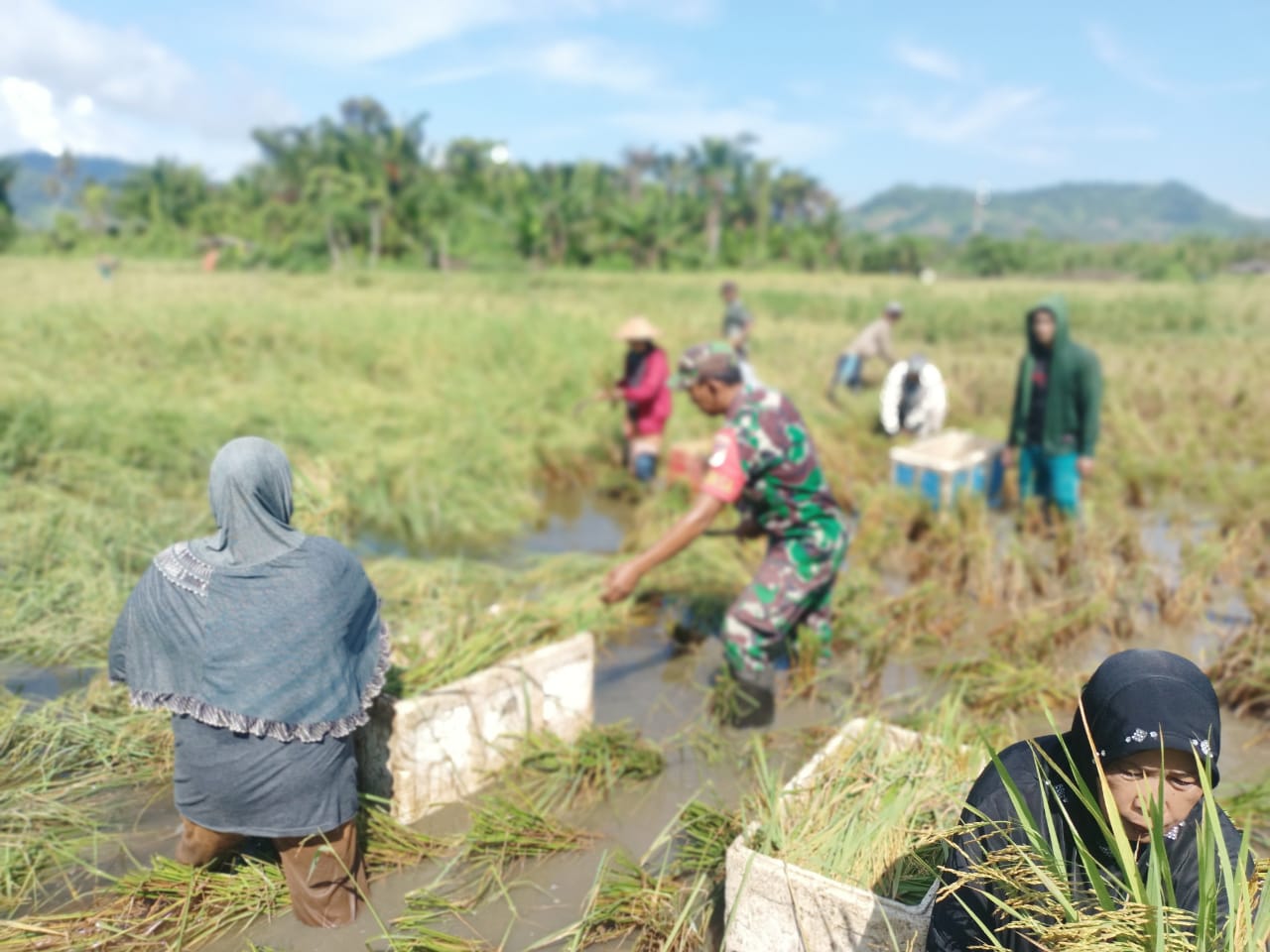 “Seperti saat ini Babinsa sedang melaksanakan panen padi, sebagai wujud rasa kepedulian terhadap para petani,” tambahnya.