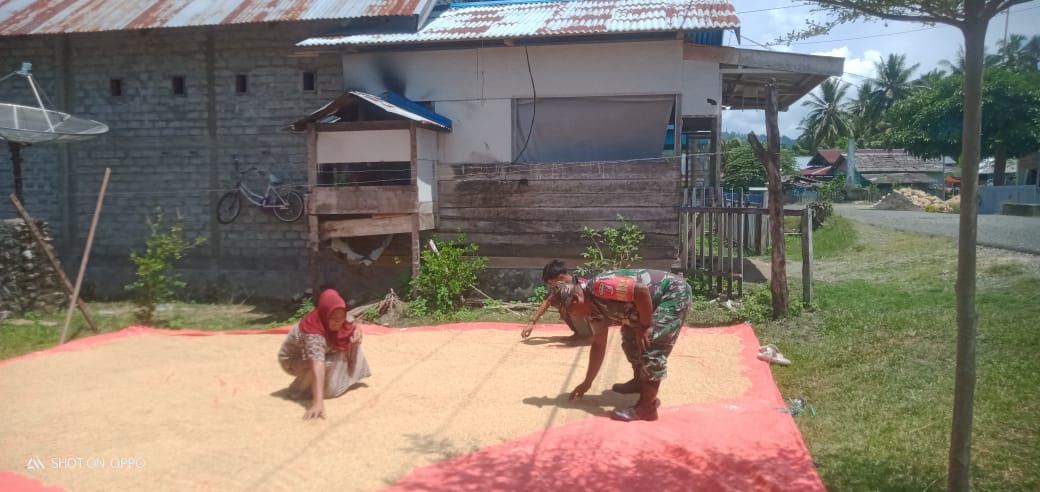 Wujud Kepedulian Terhadap Warga Binaan, Babinsa Koramil 07 Bunobogu Bantu Jemur Padi