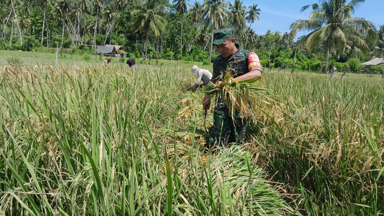 “Saat ini sedang melaksanakan panen padi, sebagai wujud rasa kepedulian terhadap para petani Babinsa ikut terjun langsung di sawah,” imbuhnya.